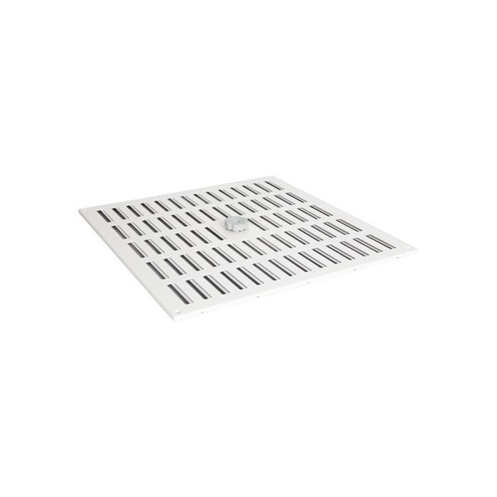 Afsluitbaar binnen rooster vervaardigd van aluminium, opbouw. Rooster is voorzien van een draaiknop geschikt voor een eventuele koordbediening. Opbouwmaat 400 x 400mm. kleur is WIT RAL9010